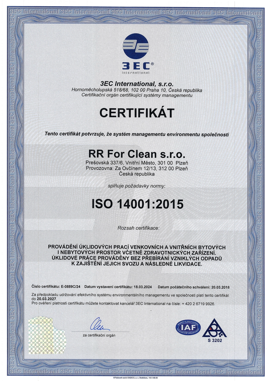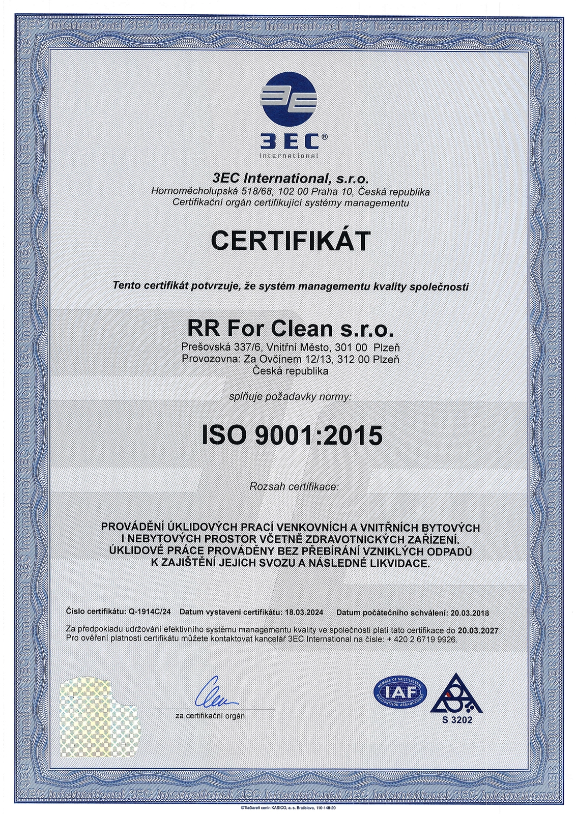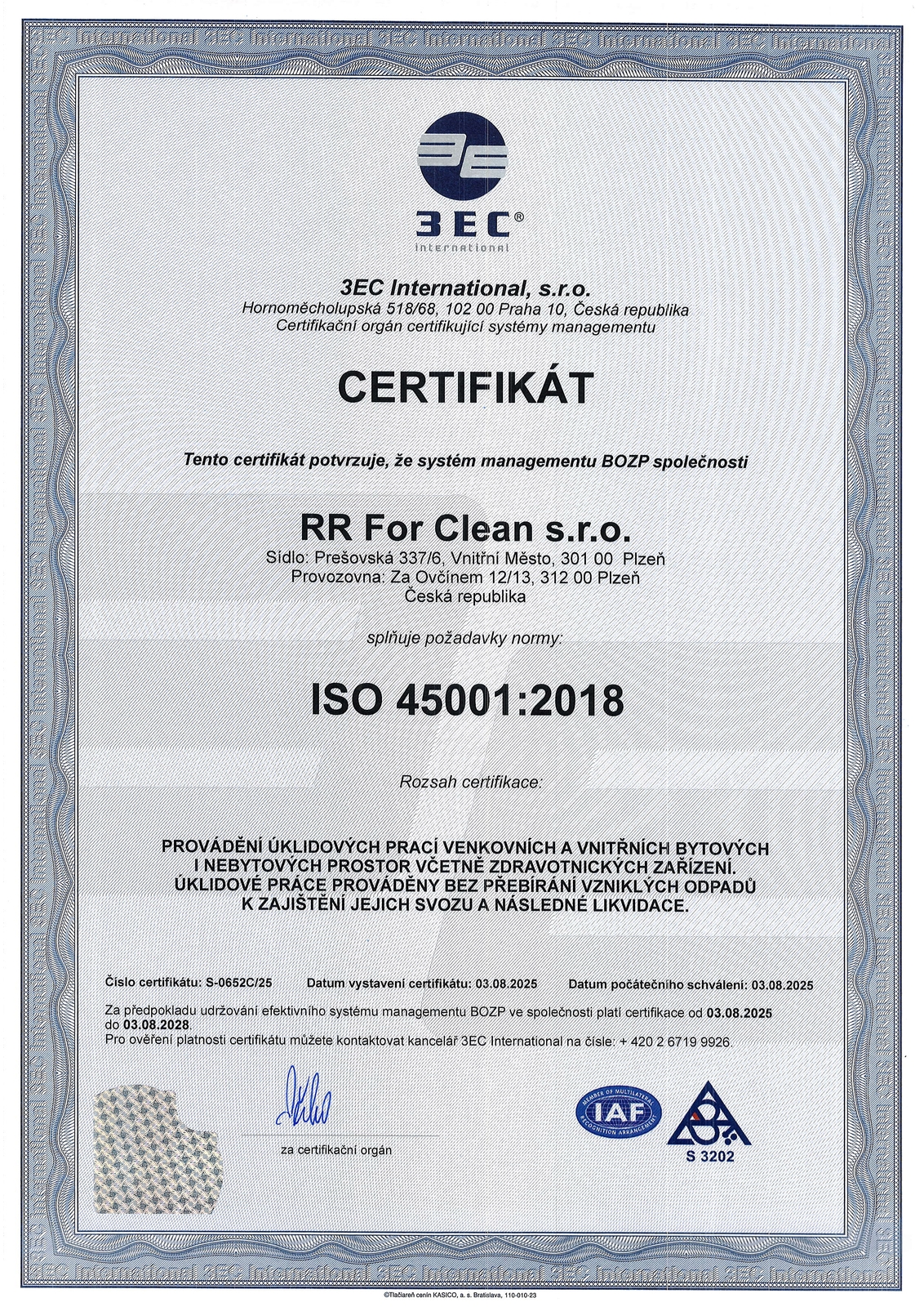 Jsme RR For Clean s.r.o. – úklidová a bezpečnostní firma, která pomáhá firmám udržet jejich provozy čisté, bezpečné a funkční, ať už jde o kanceláře, sklady, zdravotnická zařízení nebo stavby. Naše služby využívají desítky náročných klientů – měsíčně se staráme o více než 1 000 000 m² plochy ve více než 85 provozech. Za kvalitou si stojíme – jsme držitelem certifikací ISO 9001 a ISO 14001, pracujeme tak v souladu s přísnými standardy.